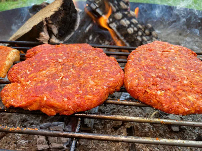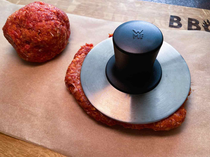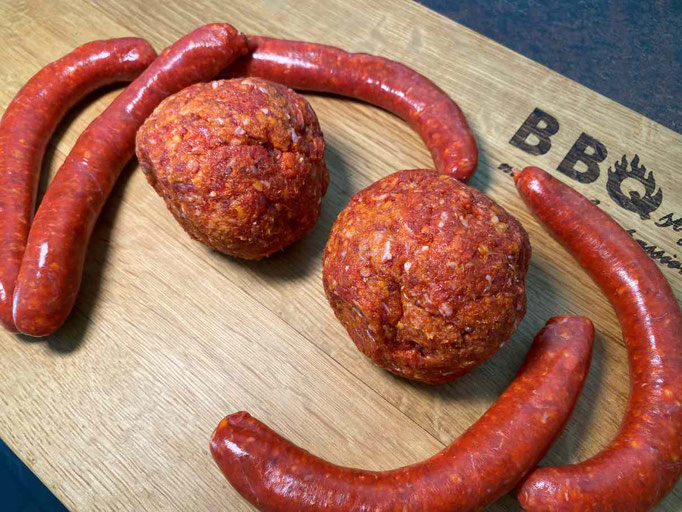 Die Merguez zu einen Masse kneten und anschließend zu einem Paddy formen