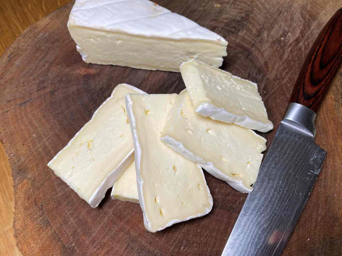 2-3 Scheiben Brie oder Camembert, sowie den Bacon.