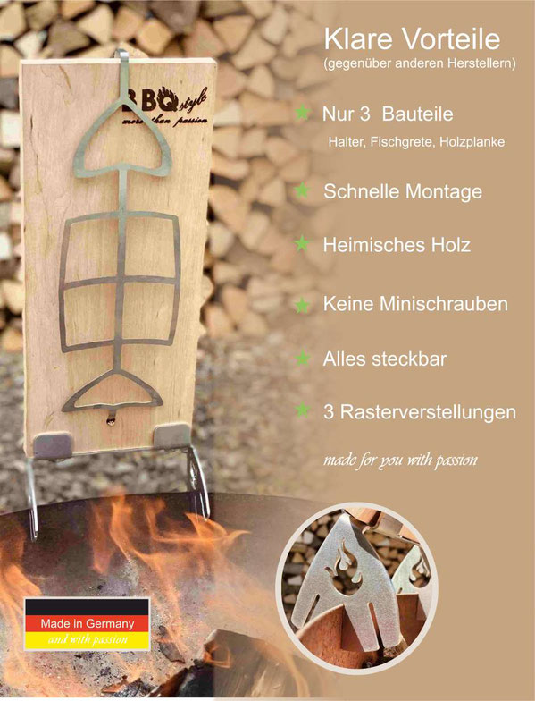 * Das Erlenholz hat ein dezentes Raucharoma , dass den Eigengeschmack des Flammlachs unterstützt und nicht überdeckt.